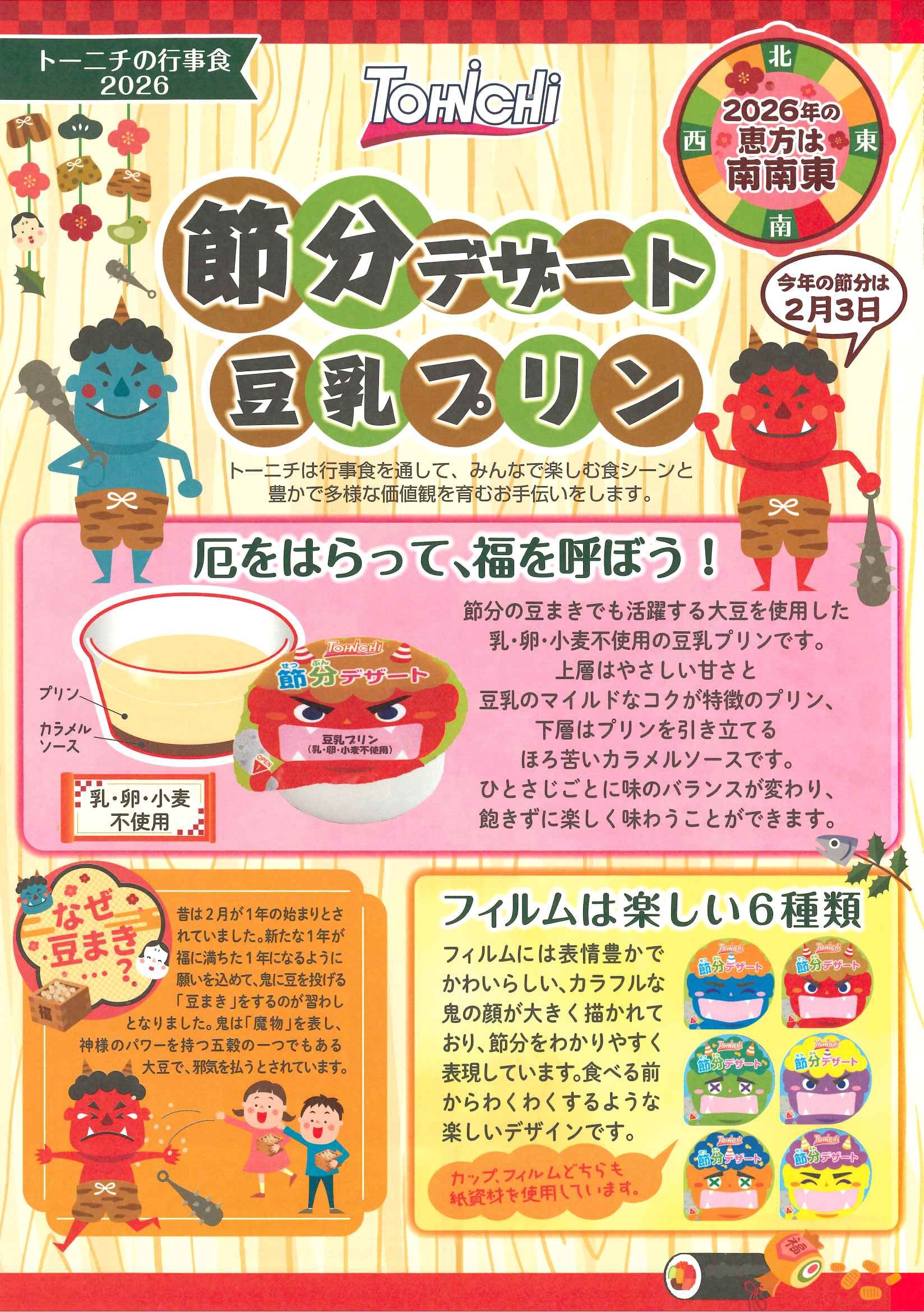 節分デザート「豆乳プリン(乳・卵・小麦不使用)」で、一年の健康と幸せを願う気持ちを込めて。