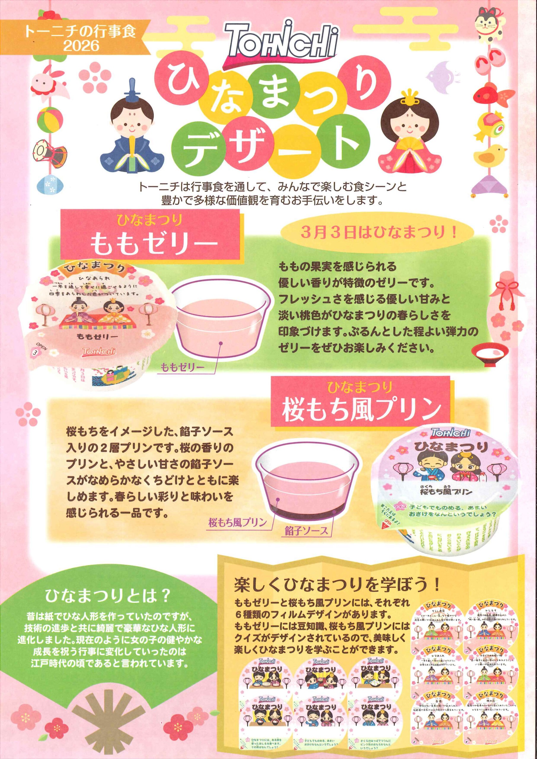 行事食(3月分)ひなまつりデザートのご注文期日は2月2日(月)とさせていただいております。